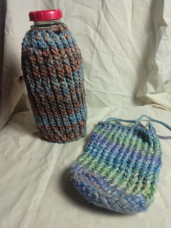 Have done many bottle socks where the bottom is a woven circle using the bias weaving method and then knitted up the sides. Can now see where following the directions for a hexagon for the middle portion of the circle would prevent the frustration of dealing with the rounded edges. If you don't understand what I'm talking about join Warped Weavies as we get into the finer details of how to use the various looms.JOIN US