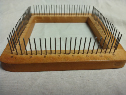 The other option is to build your own. There are templates available on some websites to get you started and if you are handy with wood then the sky is the limit for pin loom construction. Just one note on construction, if using wood pre-drill the nail holes and then use glue to hold the pins in place or else the wood will crack.